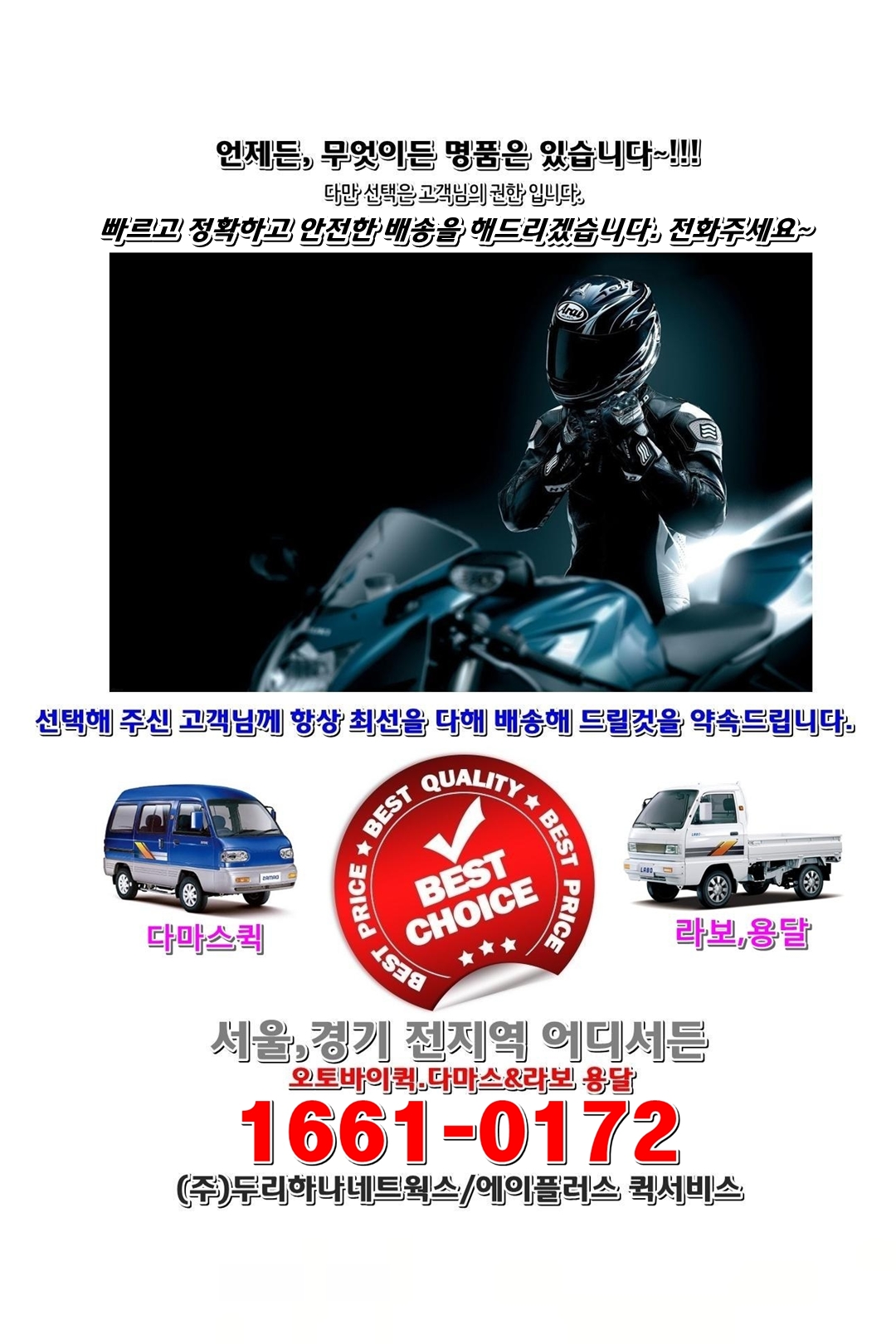 오토바이, 다마스, 라보, 1톤용달 우수전문업체