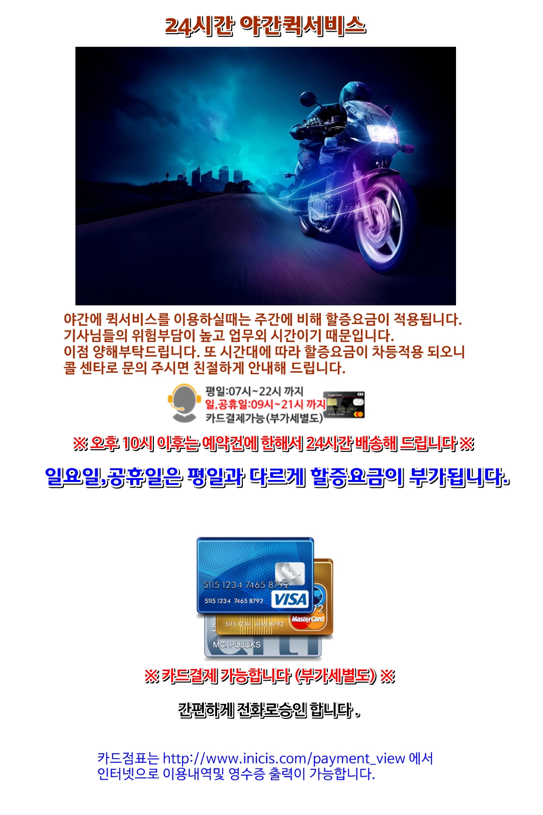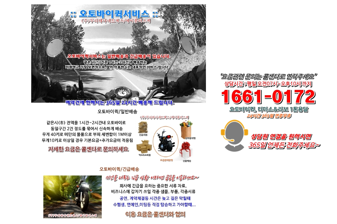 안성 서울 인천 경기 전지역 퀵서비스요금,퀵가격,퀵배송,퀵비용,조회,안내 (카드결제가능-부가세별도) 항상 정성을 다하는 에이플러스퀵서비스 입니다~ 365일 연중무휴 카드가능합니다. 오토바이퀵서비스요금,오토바이퀵가격,오토바이퀵배송,오토바이퀵비용 궁금하실땐 언제든 전화주시면 친절히 안내해 드립니다. 서류, 소화물 배송엔 빠르고 정확한 오토바이퀵을 이용하세요~ 다마스퀵서비스요금,다마스퀵가격,다마스퀵배송,다마스퀵비용 궁금할때... 라보퀵서비스요금,라보퀵가격,라보퀵배송,라보퀵비용 궁금할때도.. 언제든 전화 한통만 주시면 됩니다. 터미널퀵,고속버스퀵 지방으로 물건을 보내거나 찾아야 할때 고속버스택배대행 전문업체 입니다. 퀵서비스요금,퀵가격,퀵배송,퀵비용은 카드결제도 가능합니다. 카드결제시 부가세는 별도 입니다. 카드결제후 카드전표 출력은 PC에서 가능합니다. 퀵서비스 이용 가능지역 안내 입니다. 경기지역안내 인천 가평 고양 과천 광명 광주 구리 군포 김포 남양주 동두천 부천 성남 수원 시흥 안산 안성 안양 양주 양평 여주 연천 오산 용인 의왕 의정부 이천 파주 평택 포천 하남 화성 동구 가평읍 고양시 과천시 광명시 경기광주시 구리시 군포시 김포시 남양주시 동두천시 부천시 성남시 수원시 시흥시 안산시 안성시 안양시 양주시 양평군 여주시 연천군 오산시 용인시 의왕시 의정부시 이천시 파주시 평택시 포천시 하남시 화성시 남구 설악면 덕양구 관문동 광명동 경안동 갈매동 당동 북변동 호평동 송내동 원미동 수정구 장안구 대야동 상록구 봉산동 만안구 유양동 양평읍 연천읍 처인구 고천동 의정부동 금촌동 서정동 신읍동 천현동 진안동 연수구 청평면 일산동구 문원동 철산동 쌍령동 사노동 당정동 걸포동 평내동 지행동 심곡동 중원구 권선구 신천동 일동 숭인동 동안구 어둔동 강상면 홍문동 전곡읍 부산동 기흥구 이동 호원동 관고동 아동동 장당동 어룡동 하산곡동 병점동 남동구 상면 일산서구 갈현동 하안동 송정동 인창동 부곡동 운양동 생연동 춘의동 분당구 팔달구 방산동 이동 영동 안양동 남방동 강하면 창동 군남면 원동 수지구 장암동 중리동 야동동 모곡동 자작동 창우동 계양구 조종면 주교동 막계동 소하동 회덕동 교문동 산본동 장기동 일패동 도당동 신흥동 영통구 포동 사동 봉남동 석수동 마전동 양서면 청산면 궐동 김량장동 왕곡동 신곡동 증일동 검산동 칠괴동 선단동 배알미동 기산동 서구 북면 과천동 노온사동 탄벌동 수택동 금정동 감정동 이패동 걸산동 약대동 태평동 파장동 미산동 본오동 구포동 박달동 산북동 옥천면 단현동 백학면 청학동 역북동 오전동 용현동 율현동 맥금동 칠원동 설운동 상산곡동 중구 가평군 신원동 주암동 일직동 목현동 아천동 둔대동 사우동 삼패동 보산동 소사동 수진동 팔곡동 동본동 비산동 광사동 서종면 신진동 미산면 가장동 삼가동 학의동 민락동 진리동 교하동 도일동 동교동 신장동 반정동 부평구 대성리 원흥동 중앙동 삼동 토평동 속달동 풍무동 가운동 동두천동 역곡동 단대동 이목동 안현동 양상동 명륜동 관양동 만송동 단월면 왕징면 금암동 남동 내손동 낙양동 야당동 가재동 소흘읍 황계동 만석동 남이섬 도내동 원문동 옥길동 중대동 동구동 대야미동 마산동 수석동 안흥동 중동 산성동 율전동 매화동 부곡동 옥천동 평촌동 삼숭동 청운면 신서면 수청동 유방동 청계동 자일동 다율동 장안동 군내면 덕풍동 배양동 화수동 성사동 별양동 학온동 직동 농산물시장 도마교동 구래동 지금동 상봉암동 상동 양지동 천천동 도창동 성포동 낙원동 호계동 고읍동 양동면 월송동 중면 은계동 고림동 포일동 금오동 증포동 오도동 이충동 내촌면 망월동 기안동 송현동 북한동 부림동 광명역 태전동 재궁동 통진읍 도농동 하봉암동 소사본동 복정동 영화동 금이동 월피동 창전동 부흥동 덕정동 지평면 가업동 장남면 내삼미동 마평동 월암동 가능동 상지석동 지산동 가산면 풍산동 송산동 화평동 경마장 광명KTX 장지동 오금동 고촌읍 별내동 탑동동 심곡본동 창곡동 송죽동 과림동 건건동 달안동 봉양동 용문면 연라동 외삼미동 운학동 초평동 녹양동 사음동 산남동 독곡동 신북면 미사동 안녕동 창영동 지축동 정부청사 광명이케아 역동 수리동 양촌읍 와부읍 상패동 범박동 신촌동 조원동 계수동 사사동 회암동 개군면 상거동 양산동 호동 고산동 단월동 동패동 신장동 창수면 선동 반송동 금곡동 목동 궁내동 대곶면 진접읍 중앙동 괴안동 오야동 연무동 수암동 인지동 평안동 율정동 하거동 해곡동 산곡동 대포동 당하동 평택동 영중면 감북동 석우동 송림동 삼송동 오포읍 대야동 월곶면 화도읍 불현동 송내동 심곡동 광교동 능곡동 장상동 금산동 귀인동 옥정동 삼교동 지곶동 포곡읍 망월사 고담동 문발동 통복동 일동면 감일동 숭의동 동산동 초월읍 광정동 하성면 진건읍 소요동 고등동 하광교동 하중동 장하동 연지동 범계동 고암동 점봉동 서랑동 모현면 의정부터미널 장록동 송촌동 군문동 이동면 감이동 용현동 용두동 곤지암읍 산본 한강신도시 오남읍 계수동 상적동 